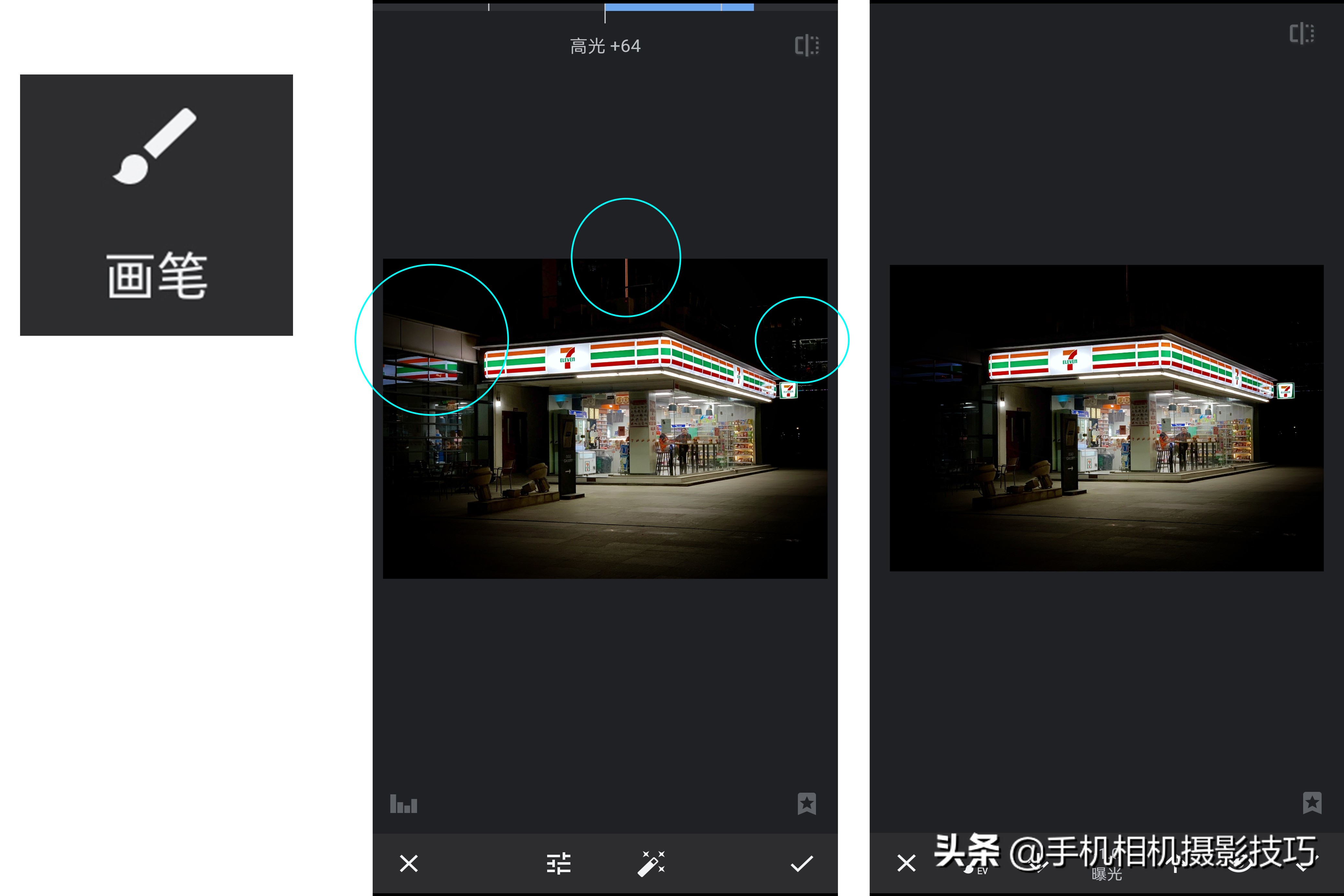后期我用了5步,手机的snapseed和电脑的PS都可以操作。