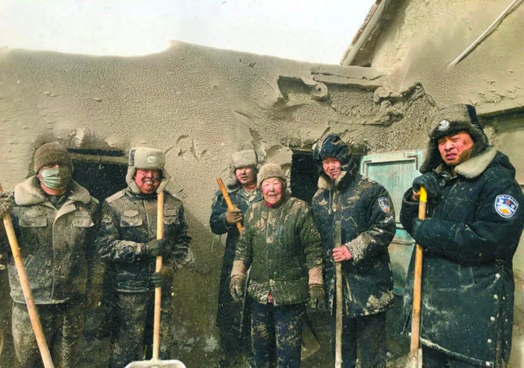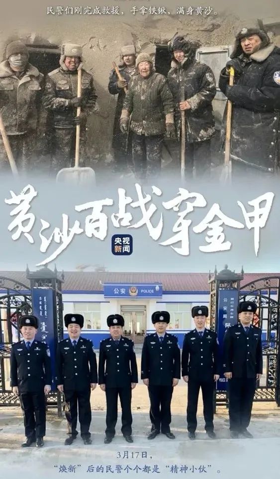 △参与救援民警(从左至右:其那尔图、王海涛、杜建峰、特尼格日、于洋)与老人合影