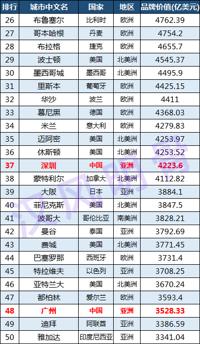 菲尼克斯排名第40,广州排名第48,雅加达排名第50,台北排名第51;