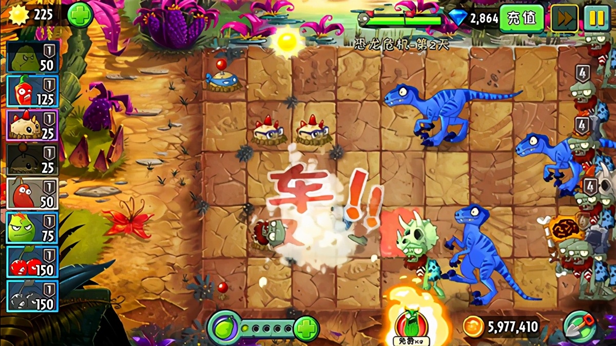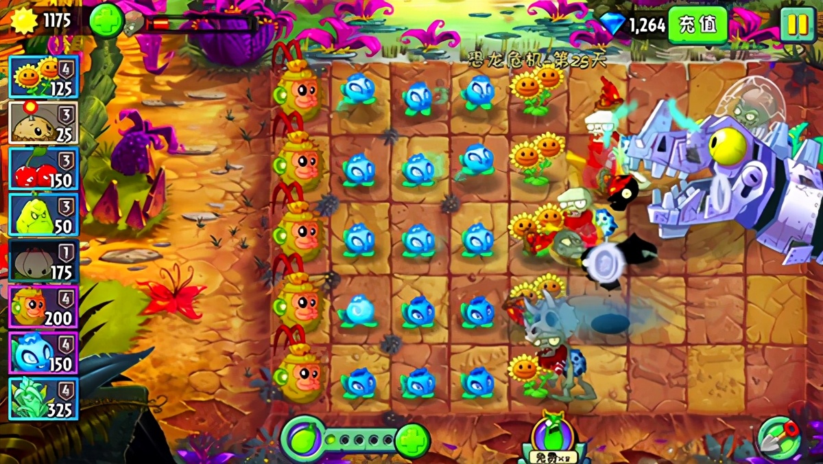 相信大家一定的玩过植物大战僵尸吧,这款游戏不仅仅是各位玩家们对童年的回忆,也是玩家们对于植物大战僵尸这款游戏浓浓的喜爱,而此次小编给大家带来的是继植物大战僵尸2系列的重大更新玩法,在此次玩法当中玩家将接触到侏罗纪时代的僵尸以及远古时代植物,甚至还能接触到时代的霸主——恐龙,听起来是不是非常的刺激呢?没错,相信大家已经猜到了,小编带来的就是植物大战僵尸2恐龙危机破解版,该版本经由大神免费破解修改,进入即可解锁全部僵尸、植物以及恐龙的免费使用,并且还能获得无限的金币与钻石,无需付费即可轻松享受无限资源的快乐。比如侏罗纪偷蛋小鬼僵尸、蛋壳小鬼僵尸,他们会在你意想不到的地方出现,因此你能帮助恐龙们守好龙蛋并消灭可恶的僵尸吗?