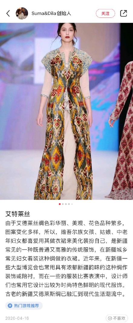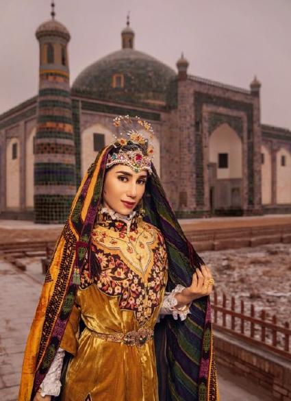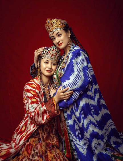 去年央视中秋晚会,热巴的这身服饰惊艳到了我!真的给人一种很大气得体的感觉,我以为是扎染工艺,后来热巴接受采访说是她家乡的一种传统丝绸布料“艾德莱斯”,寓意似祖国的大好河山。之后又在东方卫视跨年晚会穿新疆传统服饰跳新疆舞,接着在春晚采访中和北京卫视春晚一直致力宣传家乡美食:酸奶疙瘩、面肺子、大盘鸡、烤串、大红枣、手抓饭、馕饼等等。