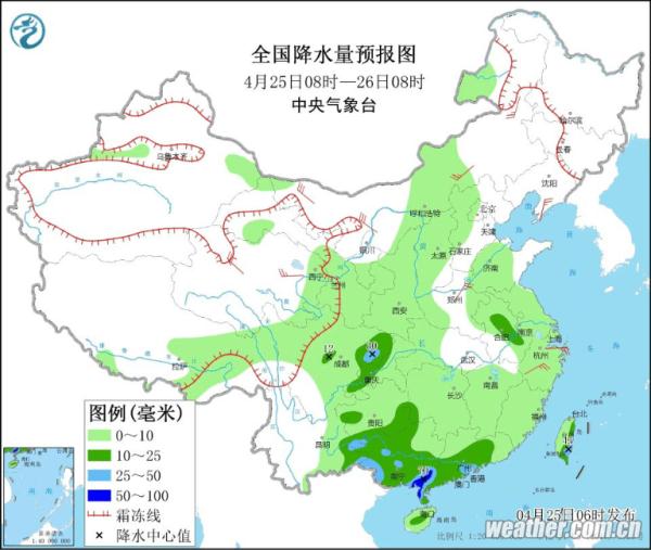 26日,江南南部、华南大部、西南地区东南部及台湾岛中南部等地的部分地区有中到大雨,其中,湖南南部、广西东北部、广东西北部等地局地有暴雨。