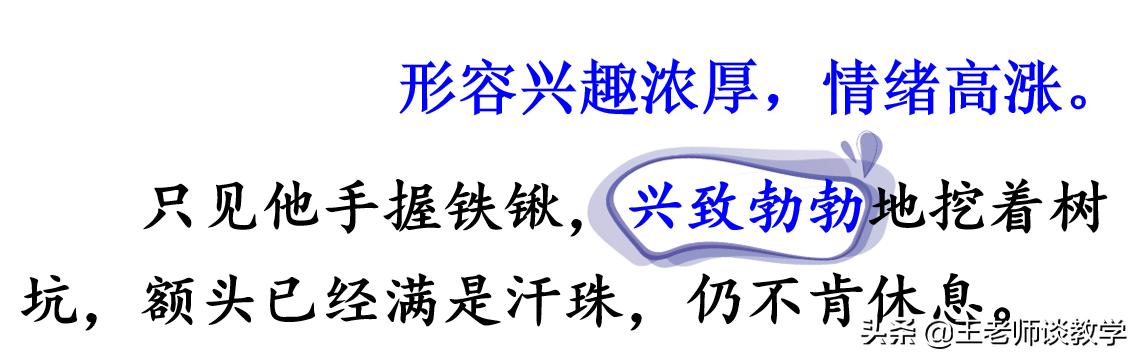 第二段:“引人注目”,形容人和食物很有特色,引起人们注意。兴致勃勃(ABCC),可以再写几个这样的词语:得意洋洋。