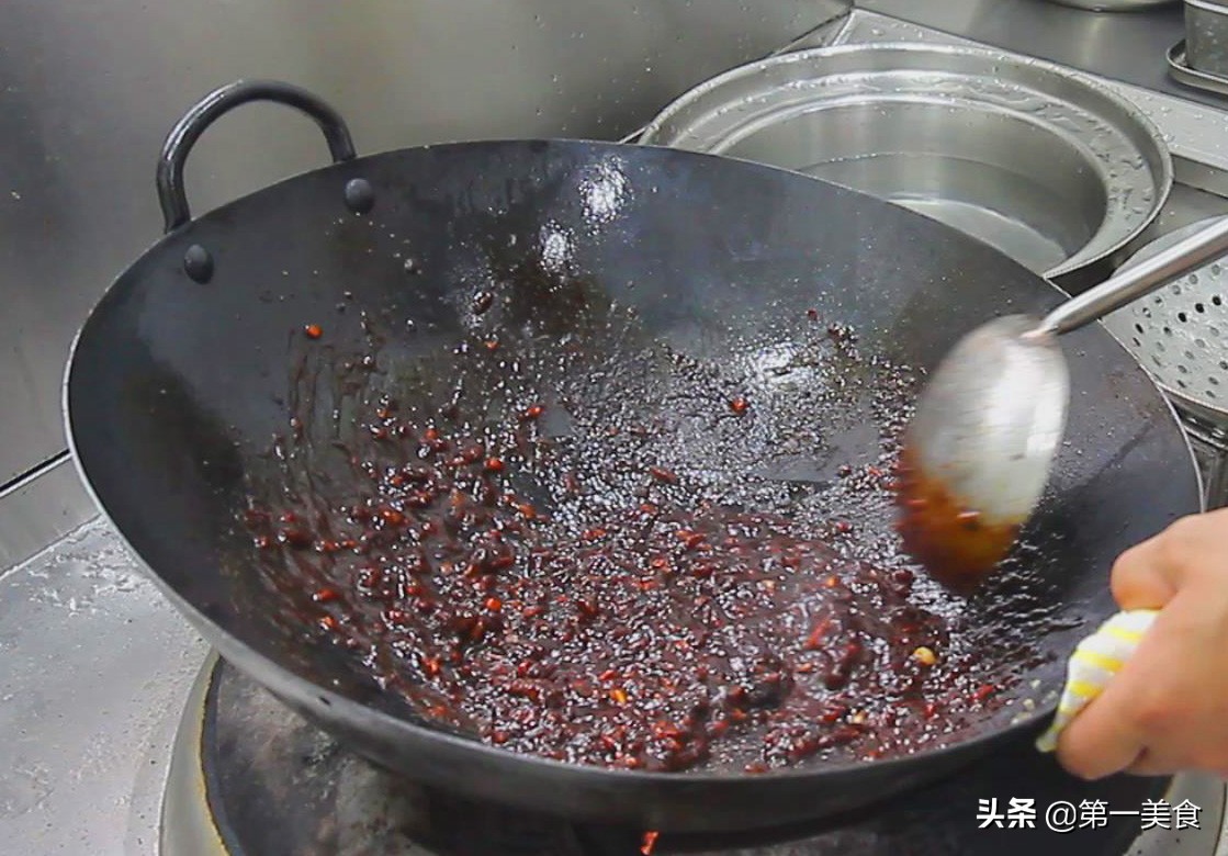 最后淋上芝麻香油,即可把炸酱出锅装在盆中。