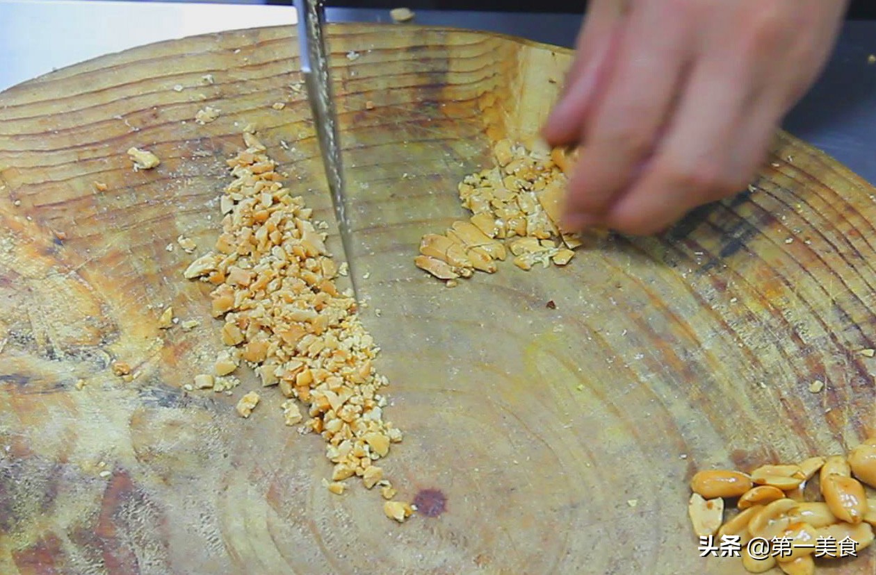 油炸花生米5克,拍碎后,剁成碎末备用。
