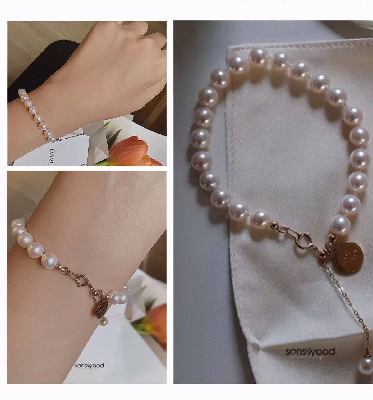 珍珠搭配金色手链,显得优雅又复古,价格300出头,适合温温柔柔的女孩子。