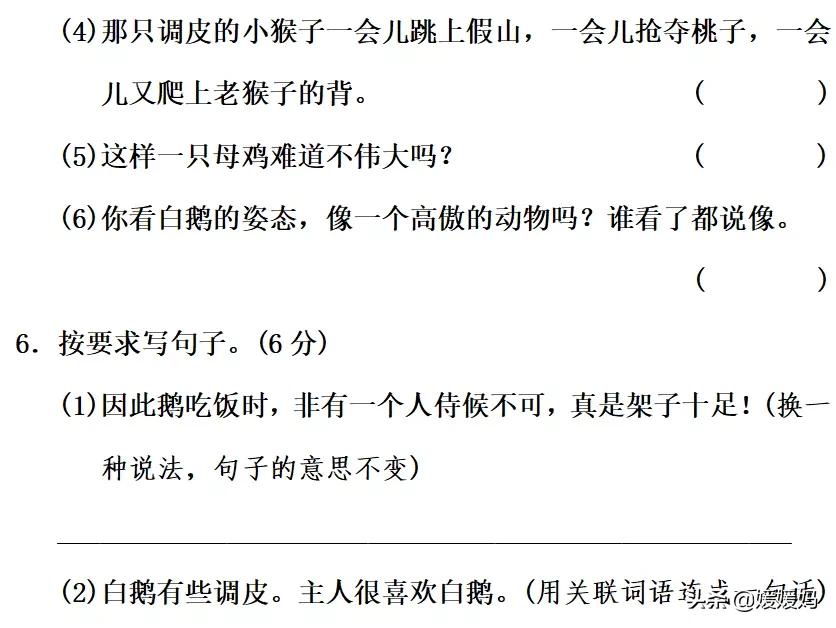 6.(1)因此鹅吃饭时,一定要有一个人侍候,真是架子十足!