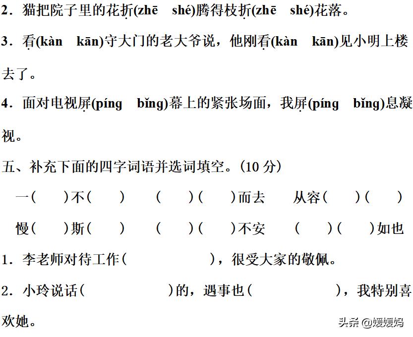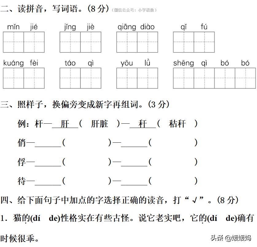 四、1.de,√ dí,√ 2.zhē,√ shé,√