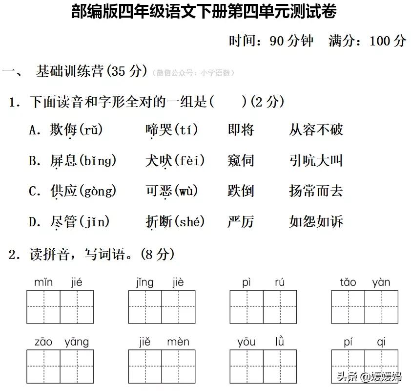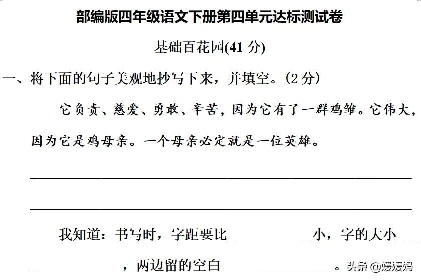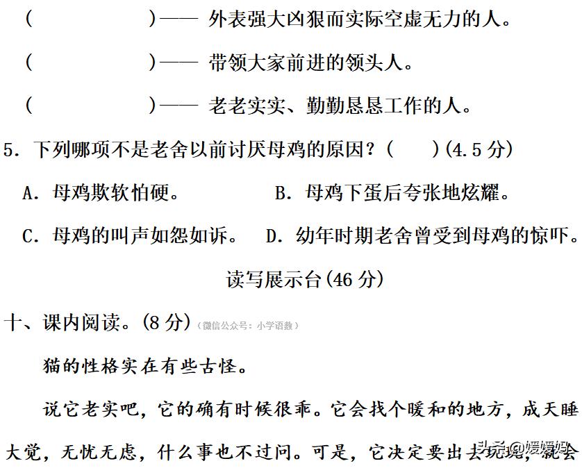 《母鸡》以填空、阅读的形式考查“我”的心理变化和母鸡的特点。