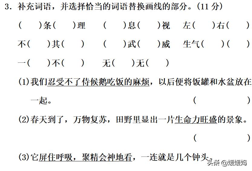 (1)不胜其烦 (2)生气勃勃 (3)屏息凝视