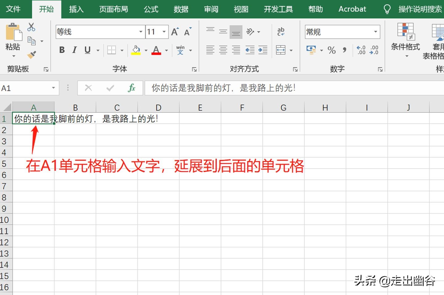 1. 如图所示,如果输入到单元格的文字超过原本单元格的宽度,则会自动在视觉上占用后面空单元格的位置。