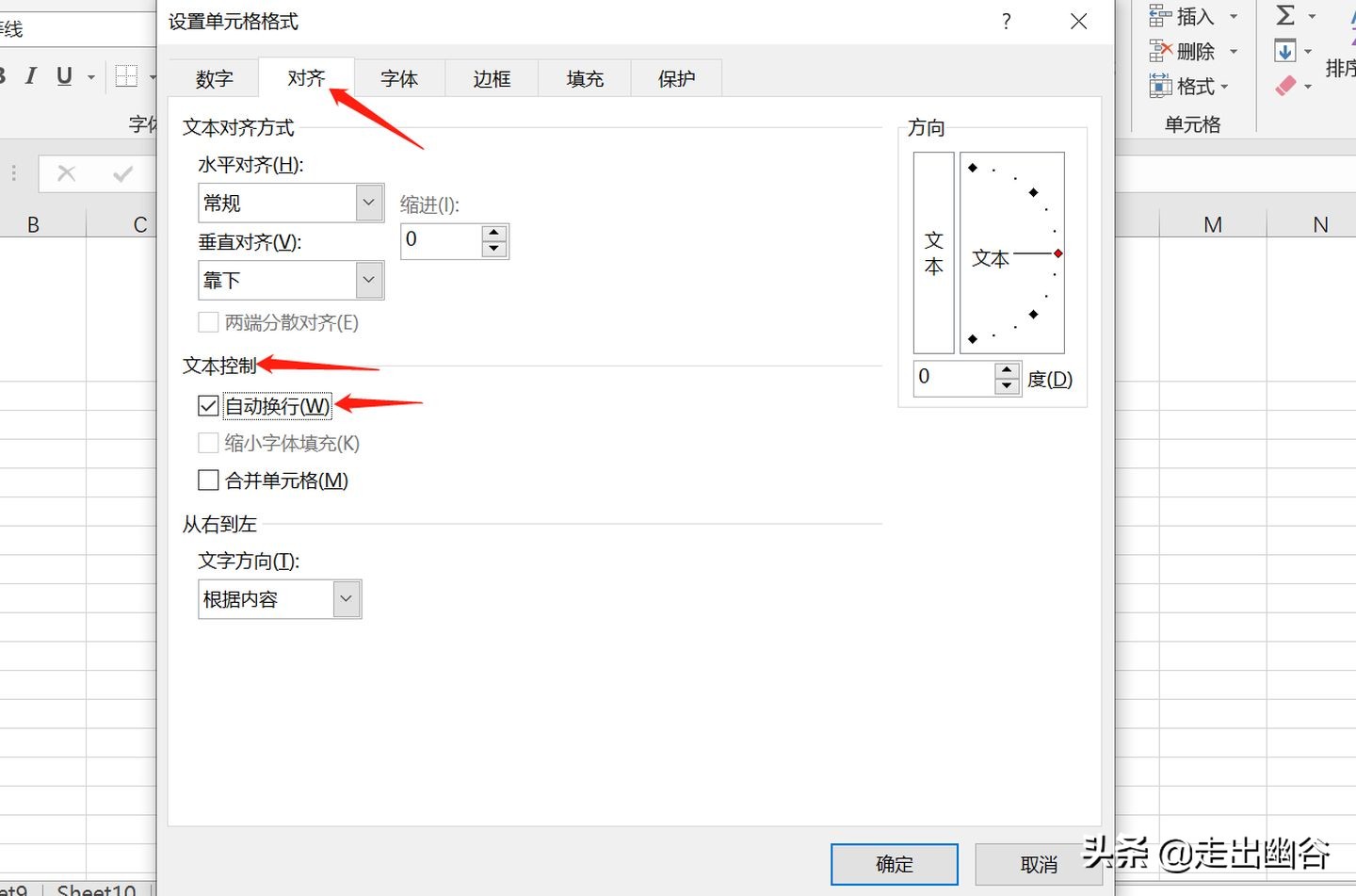 5. 点击“对齐”选项卡,找到“文本控制”,勾选“自动换行”。