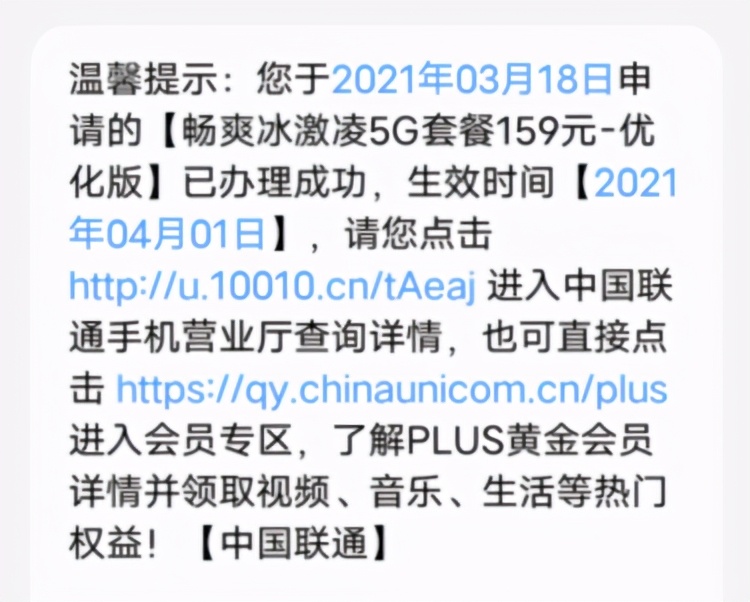 今天又接到两个中国联通的电话,我没有接,后来就有了我开通159套餐的短信。