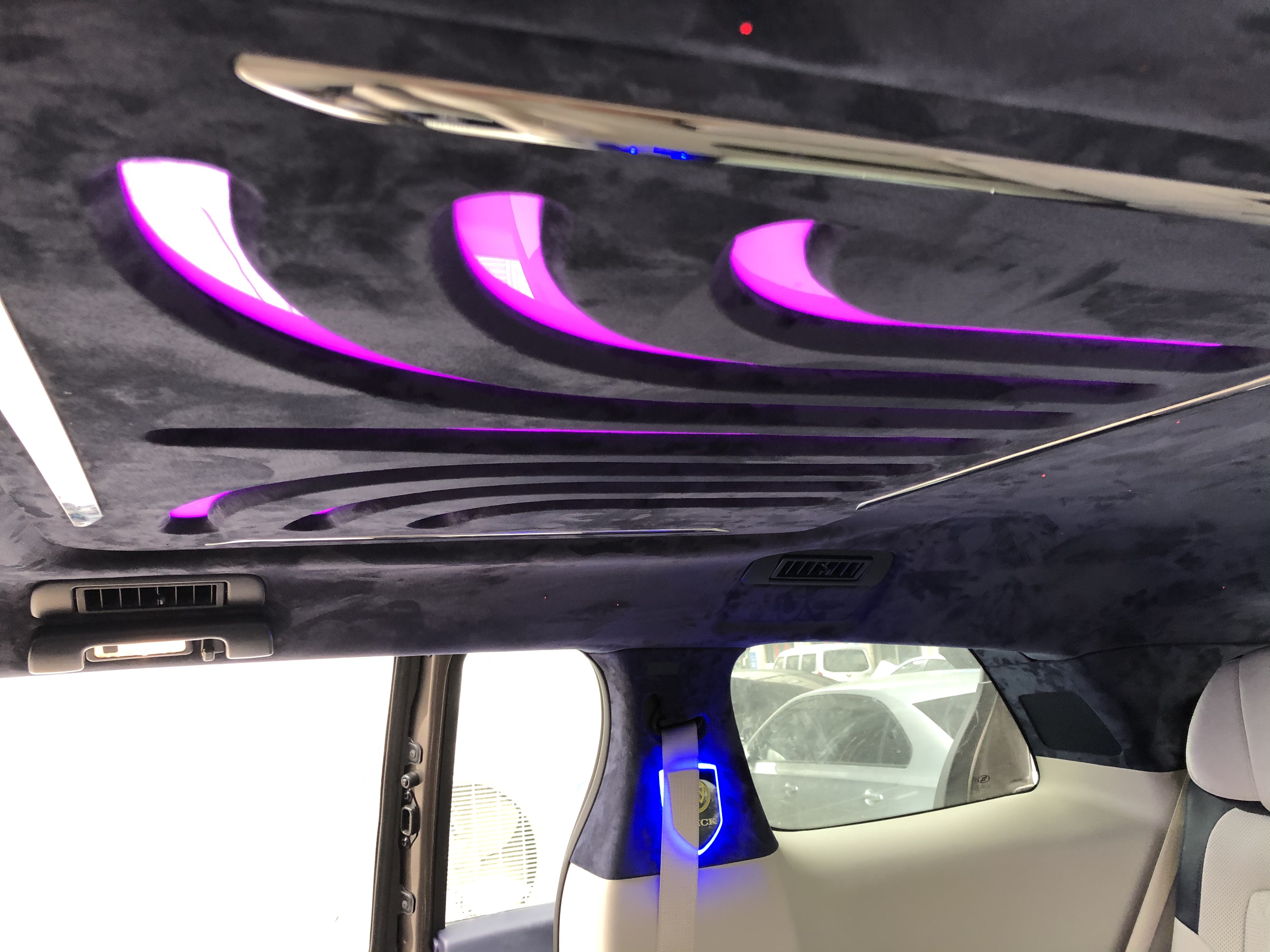 座椅、扶手箱、汽车顶棚都是帝王蓝主色调,甚至连扶手都做了喷漆处理,让整个内饰色彩更加协调。