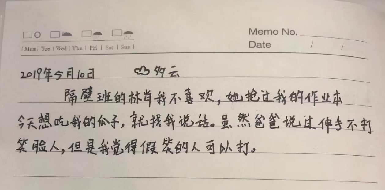 也有的学生写下一天中最有意义的一件事,还能写出自己的思考,这样的日记可能就是老师眼中的“范文”了。