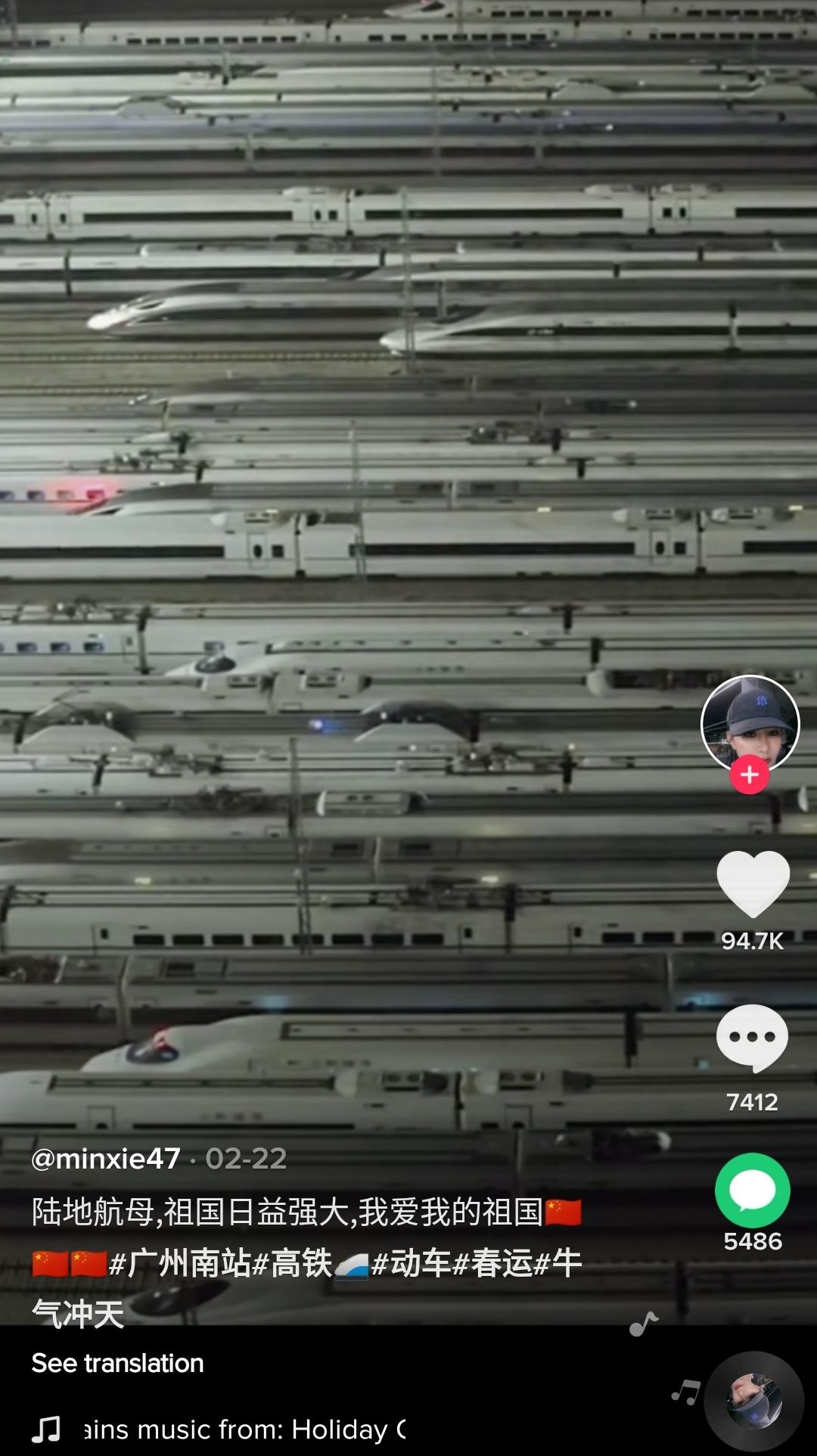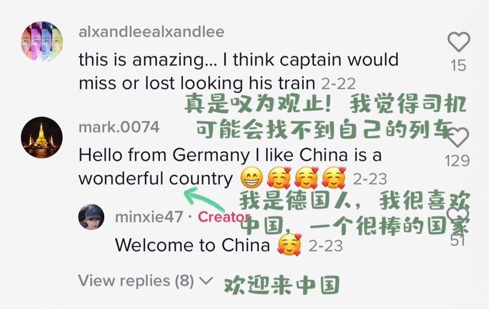 在创作者@minxie47的作品中,几十条轨道整齐紧密地排列在一起,尽管夜幕已将降临,但不时仍有列车出发驶向远处。评论区里,不少外国网友都被中国高铁的规模和水平震惊到,甚至还有人开始担心:这么多轨道,司机找不到自己的列车怎么办?目前这条视频已播放190万次,获得9万多个点赞,广州南站的人气由此可见一斑。