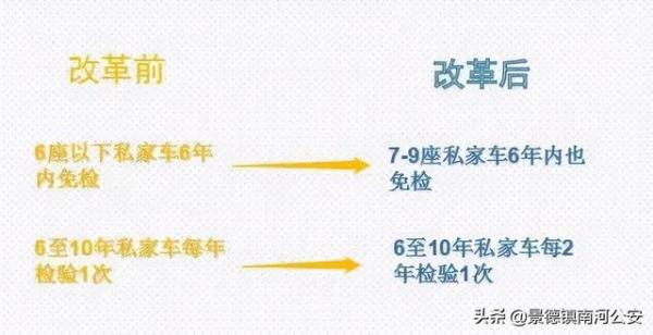 在实行6年内6座以下非营运小微型载客汽车免检基础上,将6年以内的7至9座非营运小微型等载客汽车纳入免检范围。