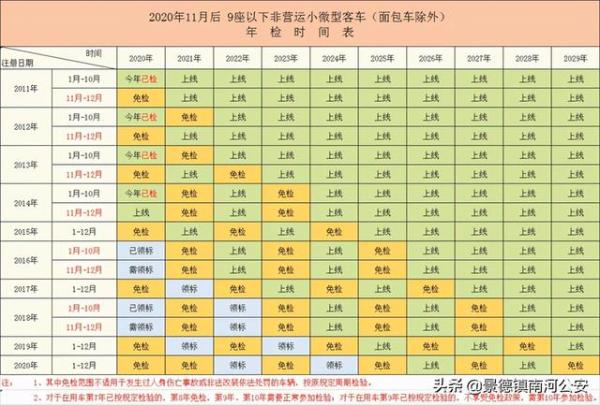 9座以下的非营运小微型客车,10年内仅需上线检验2次,分别是第6年和第8年;10年以上的,仍然按照原规定的检验周期执行,即10-15年的,每年检验一次,15年以上的,每半年检验一次。