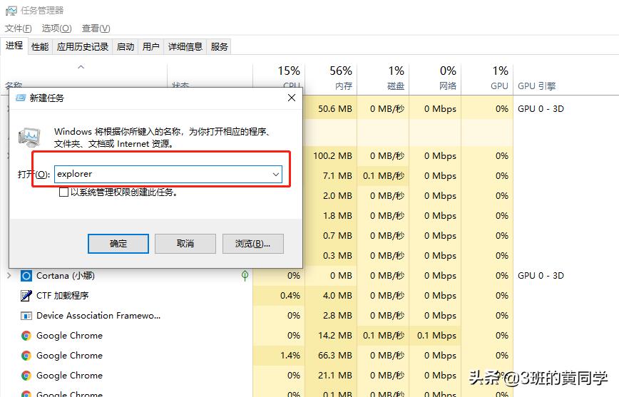 因为结束上面进程后,资源管器会被关闭掉,桌面什么的一片漆黑。在资源管理器-文件-新建任务,输入explorer,按确定即可恢复原样。