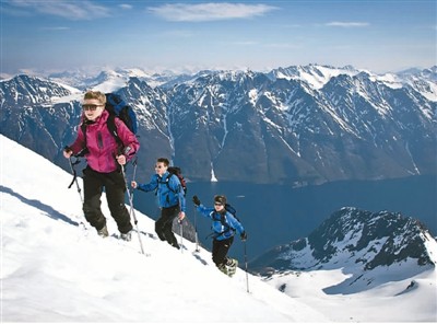 登山爱好者登顶挪威约伦峡湾。 霍瓦德·米克莱布斯特摄(挪威旅游局供图)