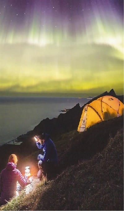 相比其它能看到北极光的地区,挪威全境气候更加温和,条件更加优越。挪威人推荐游客们尽情投入大自然的怀抱。热爱自然、喜欢在天然水域从事水上户外运动的挪威人,常会对游客发出热情的邀请——“嘿,跟我们一起去瓦洛伊岛或是罗弗敦群岛玩皮划艇吧!”“我们玩着玩着就会遇见极光,脚下是海浪,头顶是海浪波纹一样的极光。”挪威人将极光形容得这般亲切平常,更多因为他们能够融入自然。在极光下,他们逐浪嬉戏,邂逅鲸鱼海豹,甚至会在夜晚结束行程时选择钻进睡袋或干脆睡在露天吊床上。