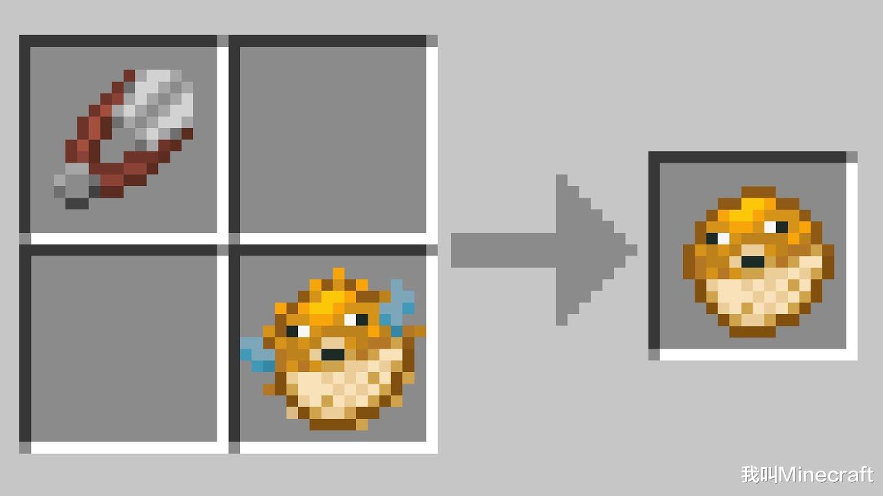 10、河豚;很多人没注意,河豚其实是长了一对可爱的小翅膀。靠翅膀的扇动可以在水中游动、沉浮。直到有一天Minecraft加入了一张全新合成表:剪刀+河豚=河豚饼干。无法恢复饱食度,并且含有剧毒。