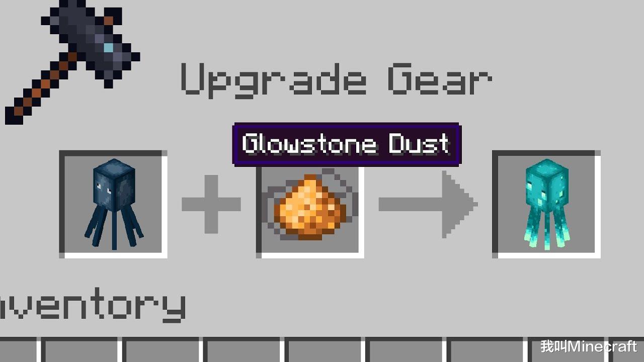 3、荧光鱿鱼;以1.16锻造台为基础,对Minecraft生物进行特性升级。譬如“僵尸+水桶”合成出溺尸,鱿鱼+萤石粉=荧光鱿鱼。这或许才是锻造台存在的意义——升级,而非合成。