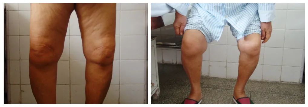 部分膝关节会因骨质增生或关节积液会出现关节肿胀。