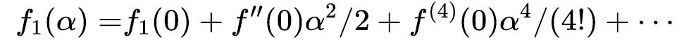 如果初始方位角是个小量,上式可以进一步化简,首先从单摆的对称性可以断言是一个偶函数,对其在处进行泰勒展开有