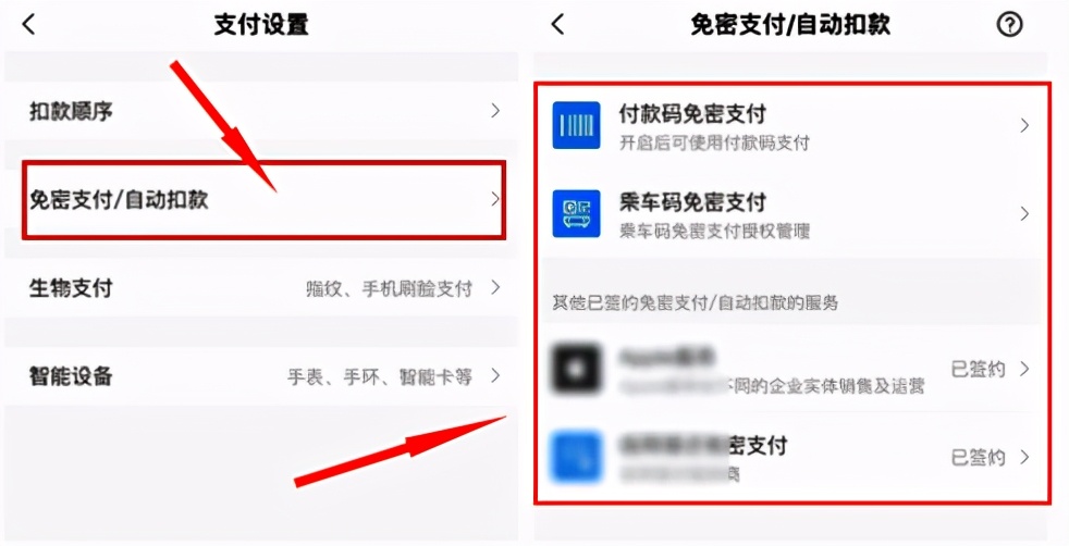 这时候会看到【免密支付/自动扣款】选项,点击进入后就能清楚地看到自己账户已经签约的免密支付服务,可以根据自己的需求关闭相应的服务。