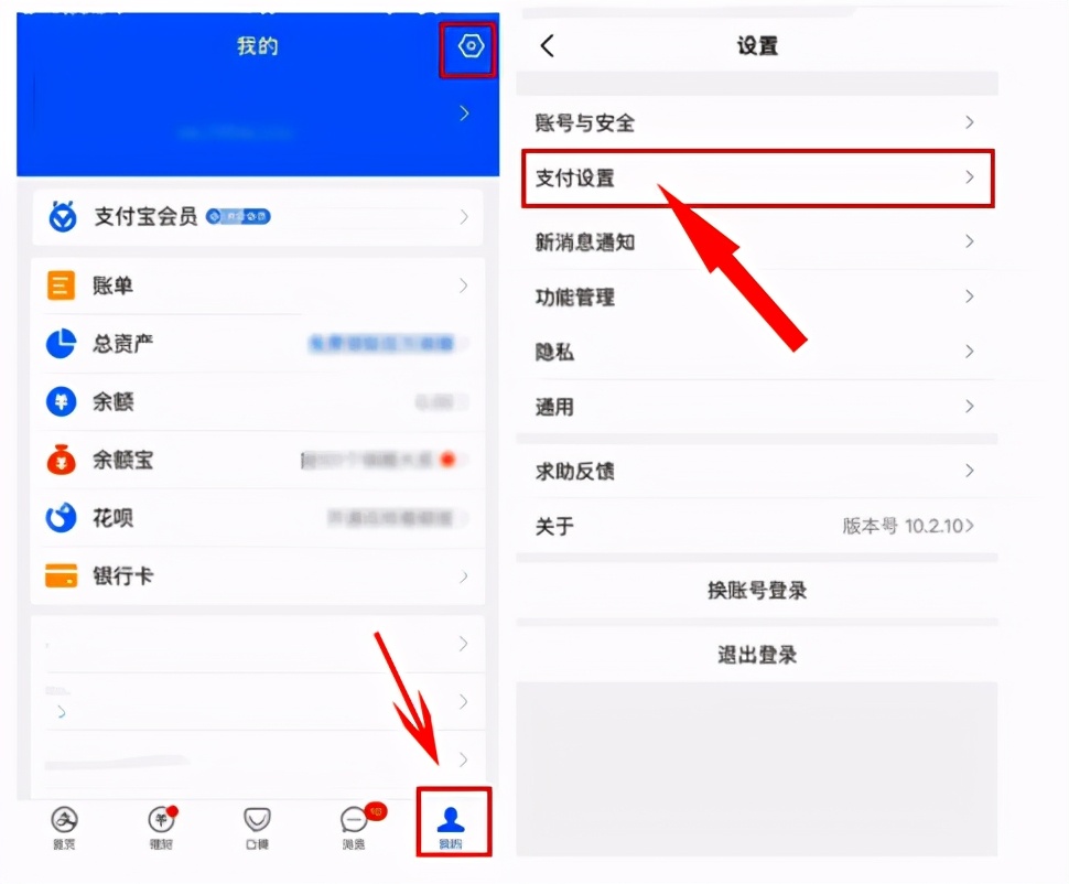 打开【支付宝】之后,点击底部【我的】选项,然后点击右上角的【设置】,再点击【支付设置】。