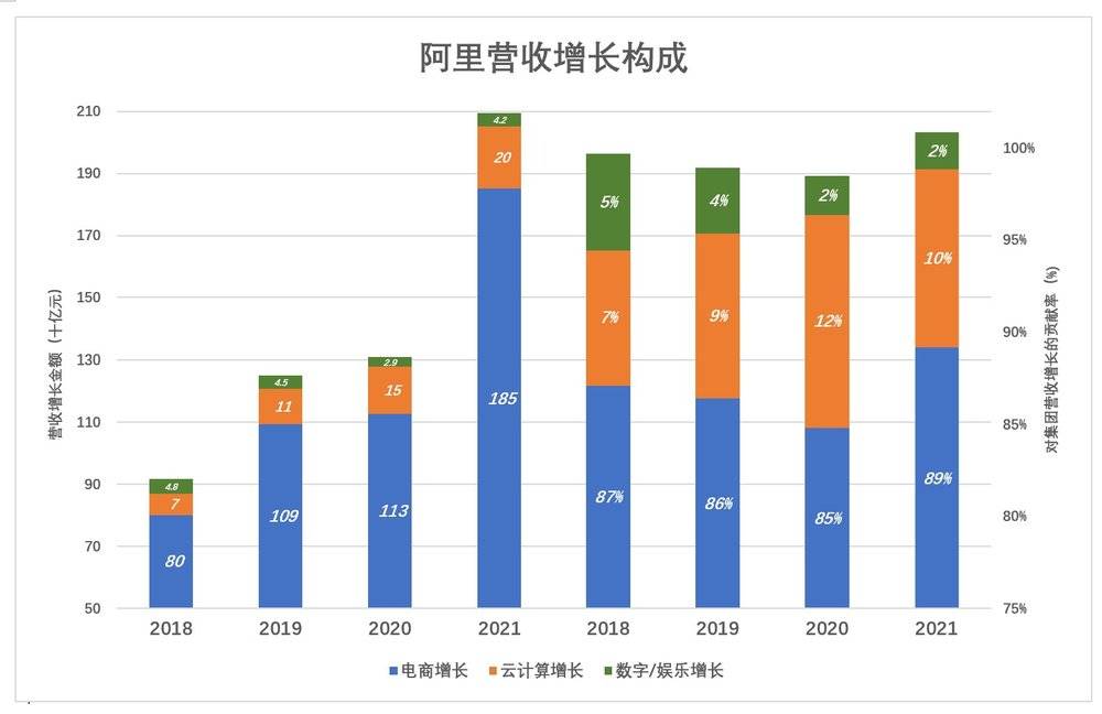 2021财年,核心商业营收6211亿,同比增长1850亿,增幅42.4%,对集团营收增长的贡献率达89%;