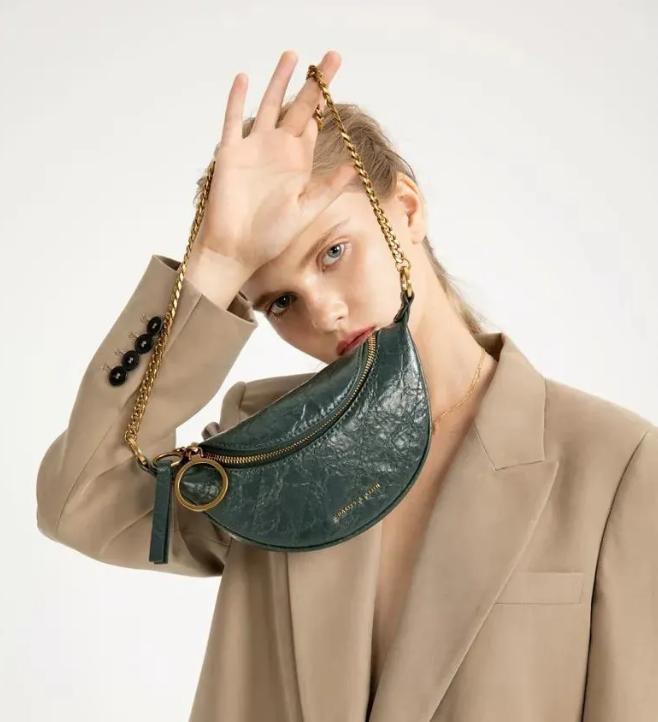 还有一个新潮款就是小ck的月亮包,不管从哪个角度看,都是立体的效果,加入黄铜色链条和宽肩带设计,很适合走甜酷路线的辣妹。