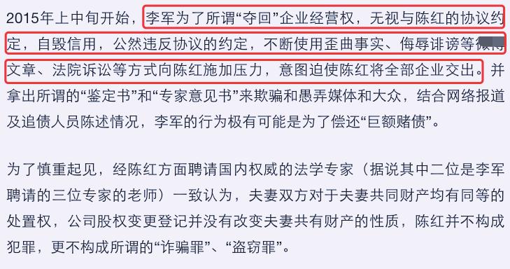 据悉,在离婚后李军私自毁约,并且还不断通过各种手段向陈红施加压力,陈红不得不做出反击。