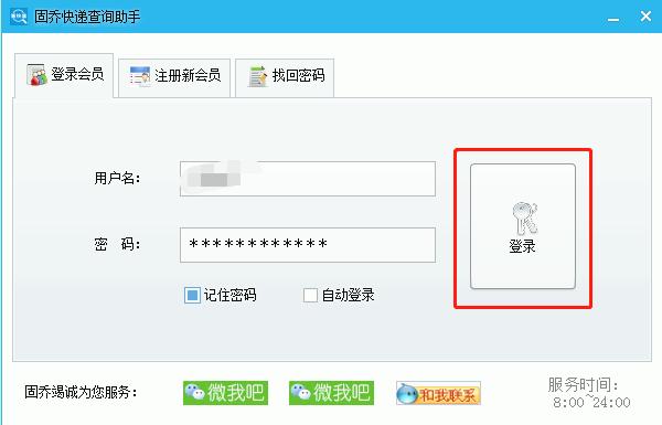 第一步:将固乔快递批量查询助手下载到电脑之后,不需要解压打开可使用,查询之前需要提前注册账户和密码,然后再点击登录。