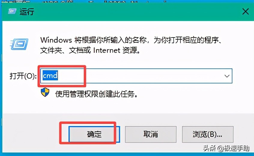 第二步,接着在运行窗口中,输入【cmd】,然后点击【确定】按钮。