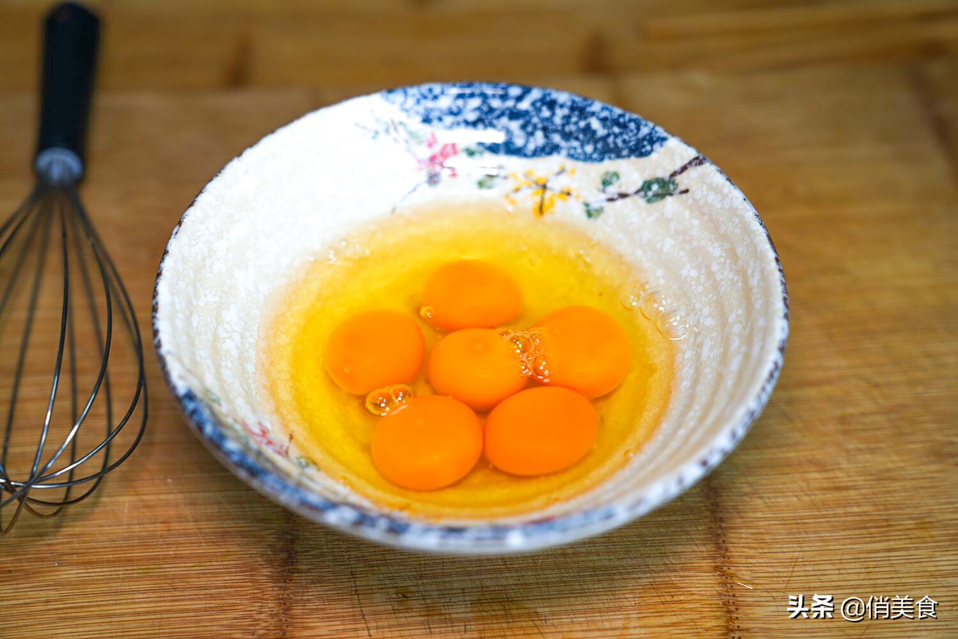 4、准备6个土鸡蛋打入碗中,蛋液搅散后放一盘备用。