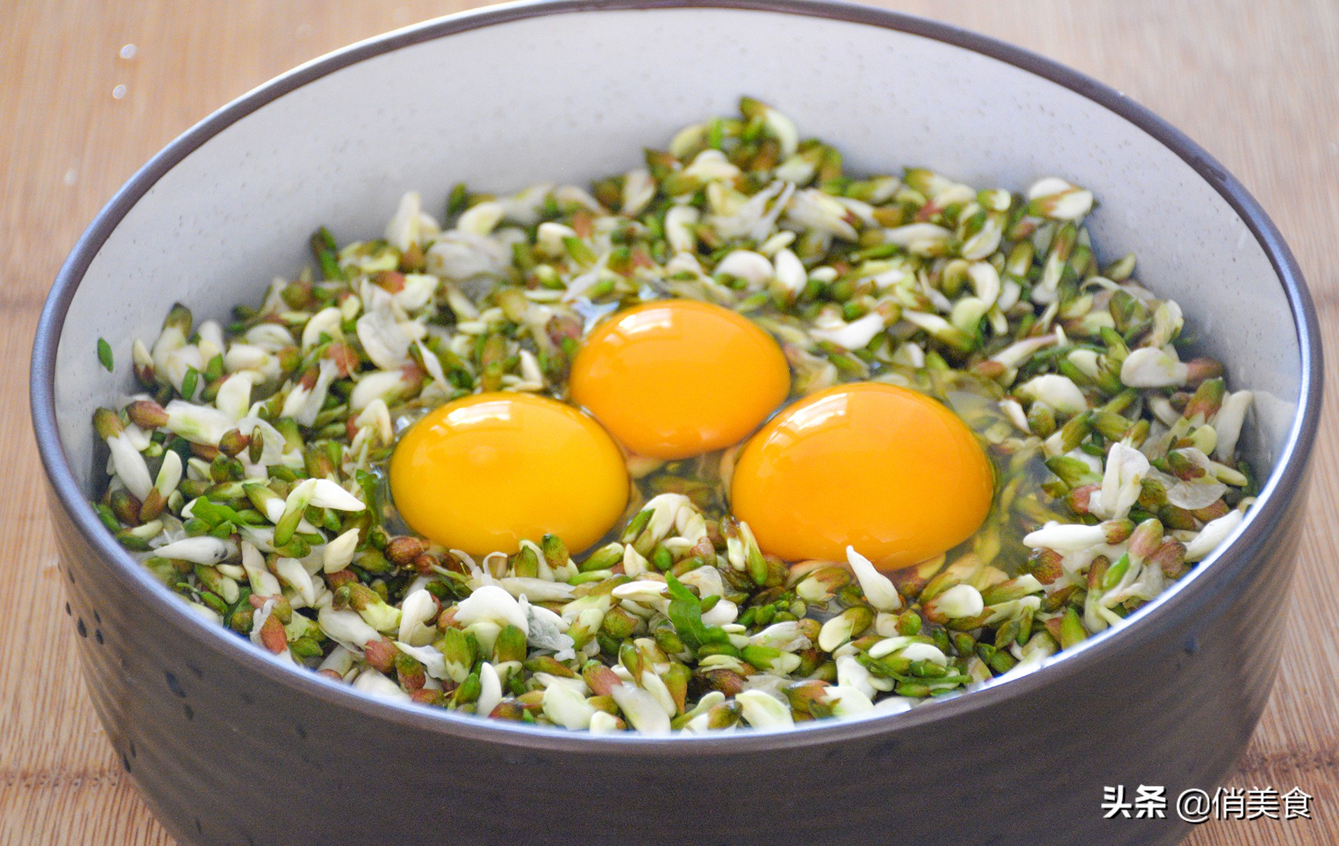槐花加韭菜鸡蛋这样做真是太香了,外皮又焦又香,里面有股槐花和韭菜的清香,味道太赞啦!