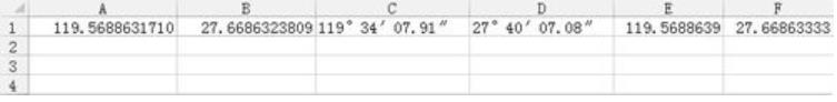 可以得到转换后的经度度分秒数值,纬度转换方法与此一样。