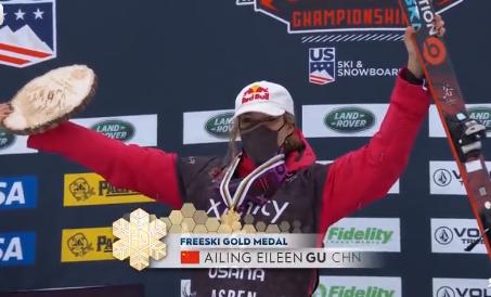 谷爱凌再夺坡面障碍技巧金牌。视频截图