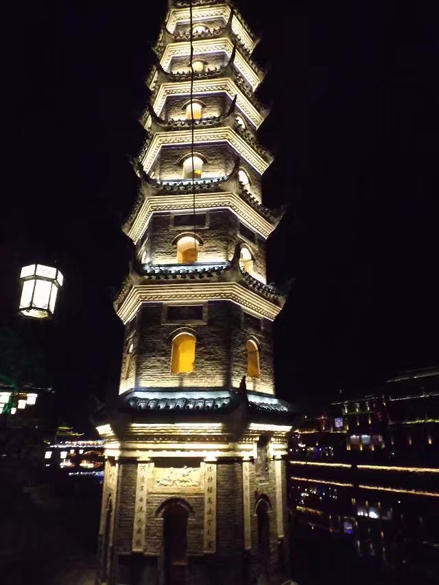 万名塔,位于沱江沙湾北岸,塔为六方、七级。塔高22.98米,一层直径4.5米,向上每层直径缩小0.3米。由著名画家黄永玉倡导建设。