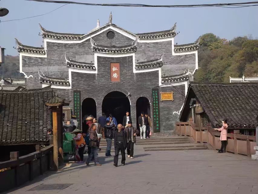 虹桥,跨过沱江的桥,桥廊道里是小市场。
