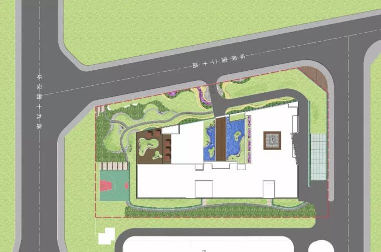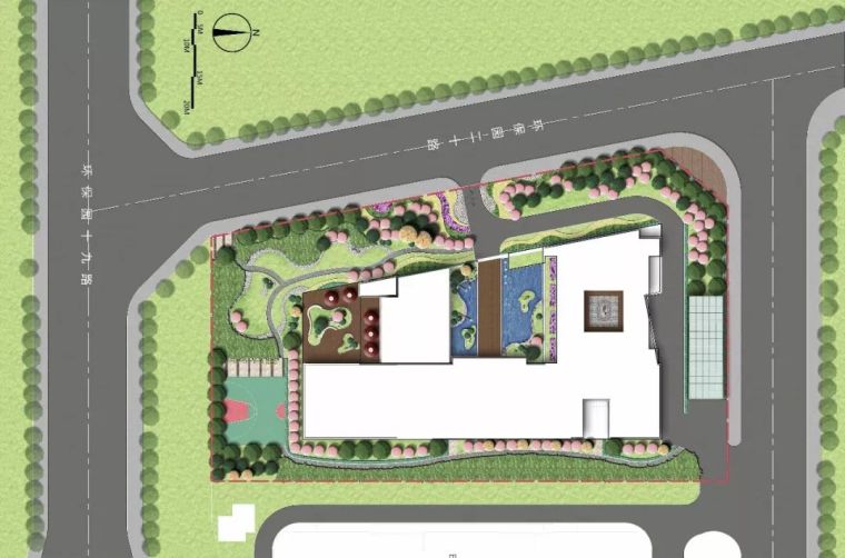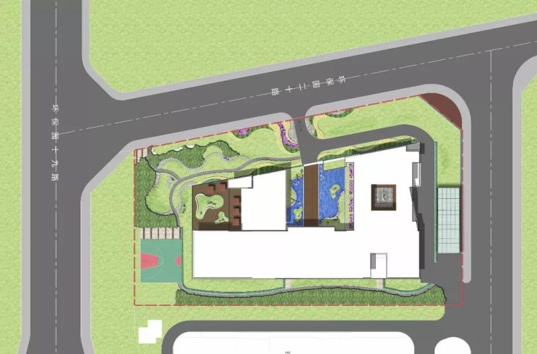 最后加点小配景比如喷泉特效、景墙、建筑、构筑物、雕塑的阴影。