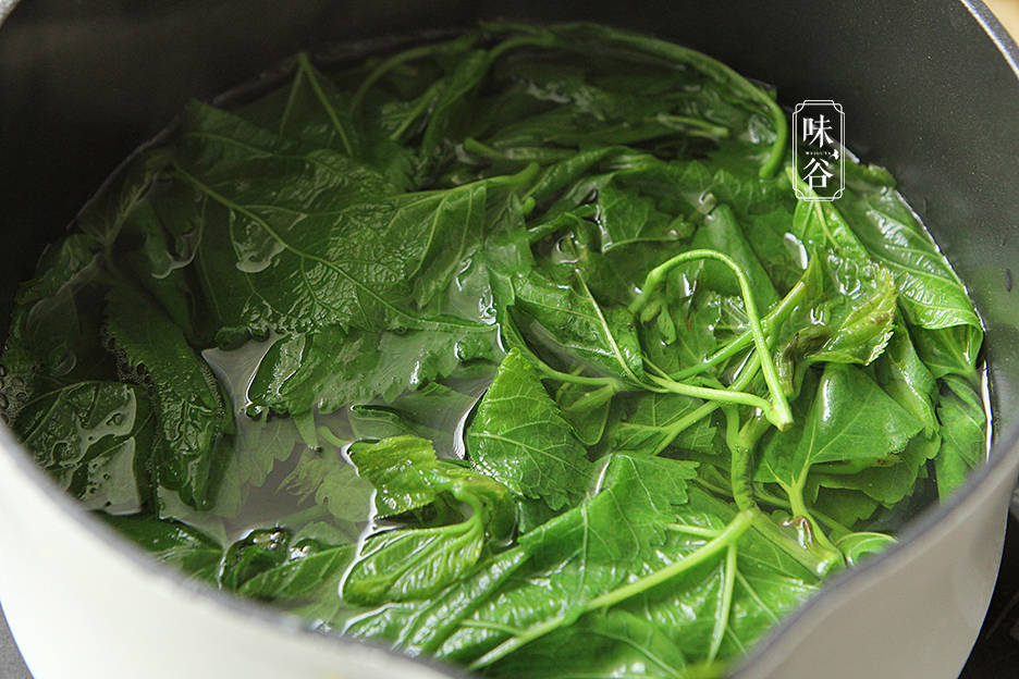 【做法】:1;桑叶要买新鲜绿油油的嫩嫩的,桑叶洗干净,梗不要,只摘嫩的叶子,锅里的水烧开,把桑叶扔进去焯2分钟左右捞出,过冷水沥干。