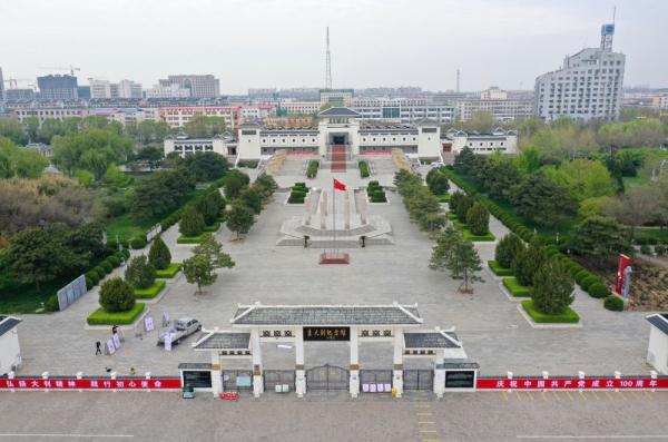 ↑这是4月26日拍摄的位于河北省唐山市乐亭县的李大钊纪念馆(无人机照片)。新华社记者 金皓原 摄