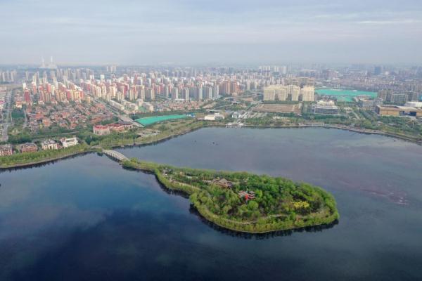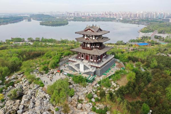 ↑这是4月26日拍摄的唐山市南湖公园(无人机照片)。新华社记者 邢广利 摄
