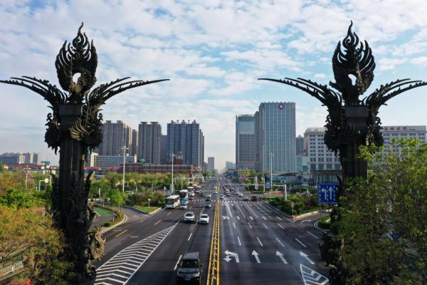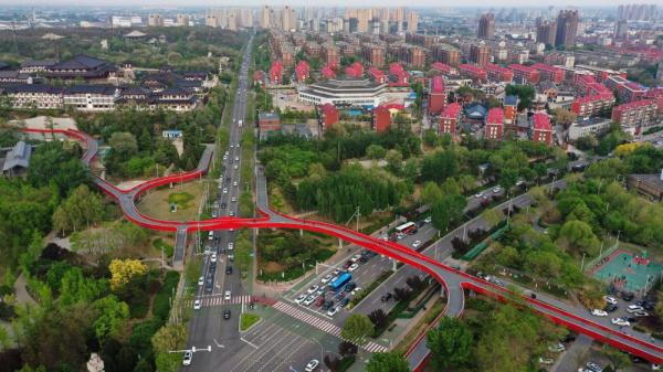 ↑这是4月24日拍摄的唐山北外环跨线桥(无人机照片)。新华社记者 杨世尧 摄