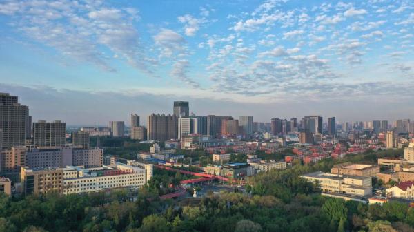 ↑这是4月26日拍摄的唐山市区景色(无人机照片)。新华社记者 杨世尧 摄