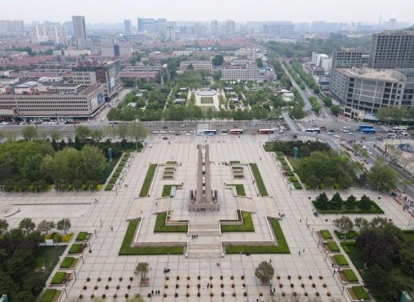 ↑这是4月26日拍摄的位于河北省唐山市的唐山抗震纪念碑(无人机照片)。新华社记者 金皓原 摄