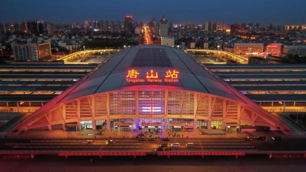 ↑这是4月3日拍摄的唐山站(无人机照片)。新华社记者 杨世尧 摄